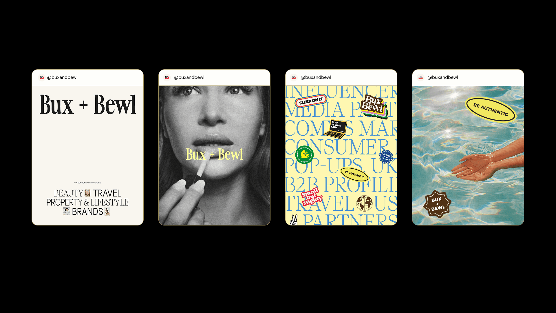 This project was about capturing energy and giving it structure. Bux + Bewl are a creative communications studio built on collaboration, bold thinking and a clear point of view. They don’t follow the usual rules of the industry, so the brand needed to reflect that from the outset. Expressive, intelligent and unapologetically future focused.